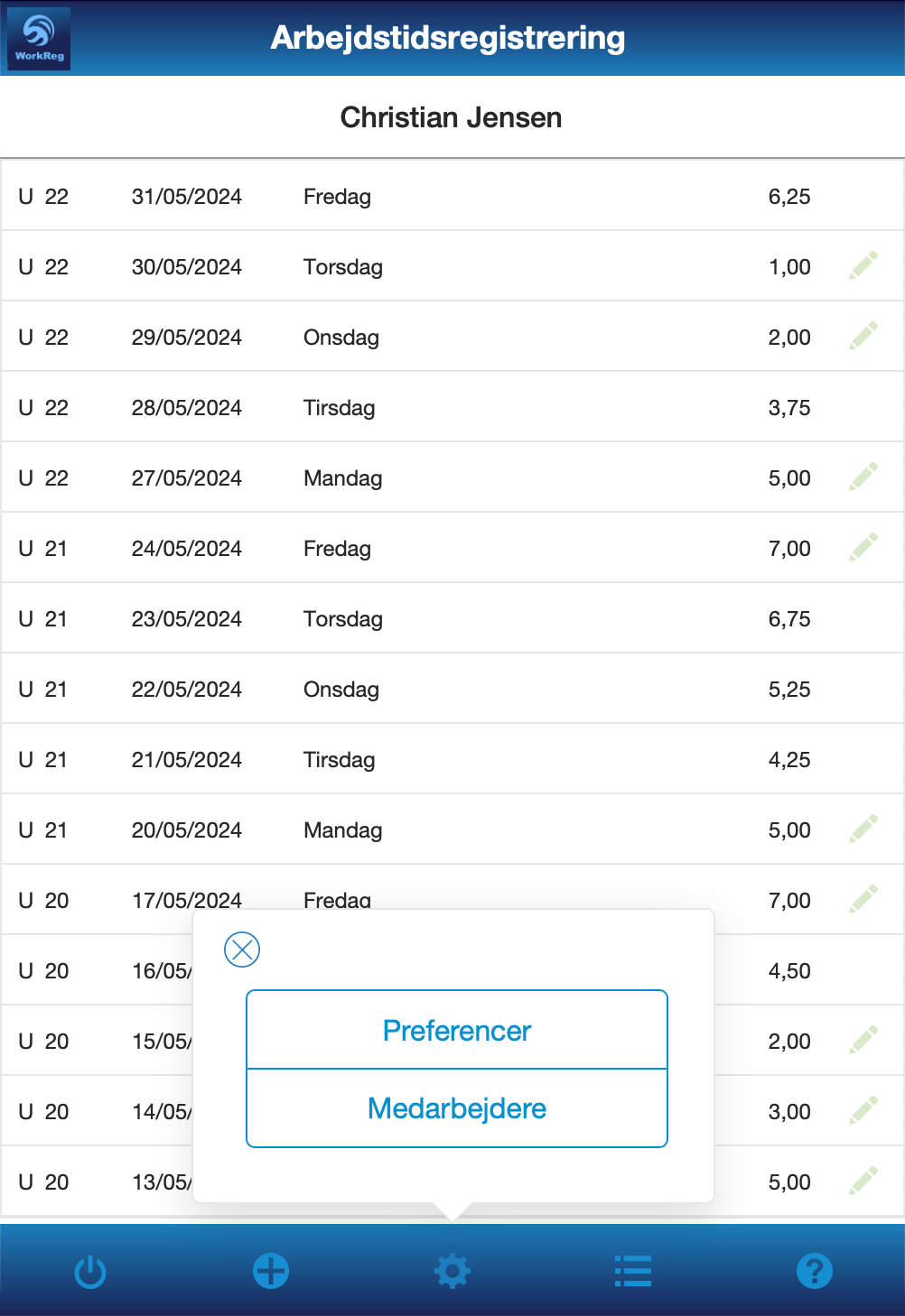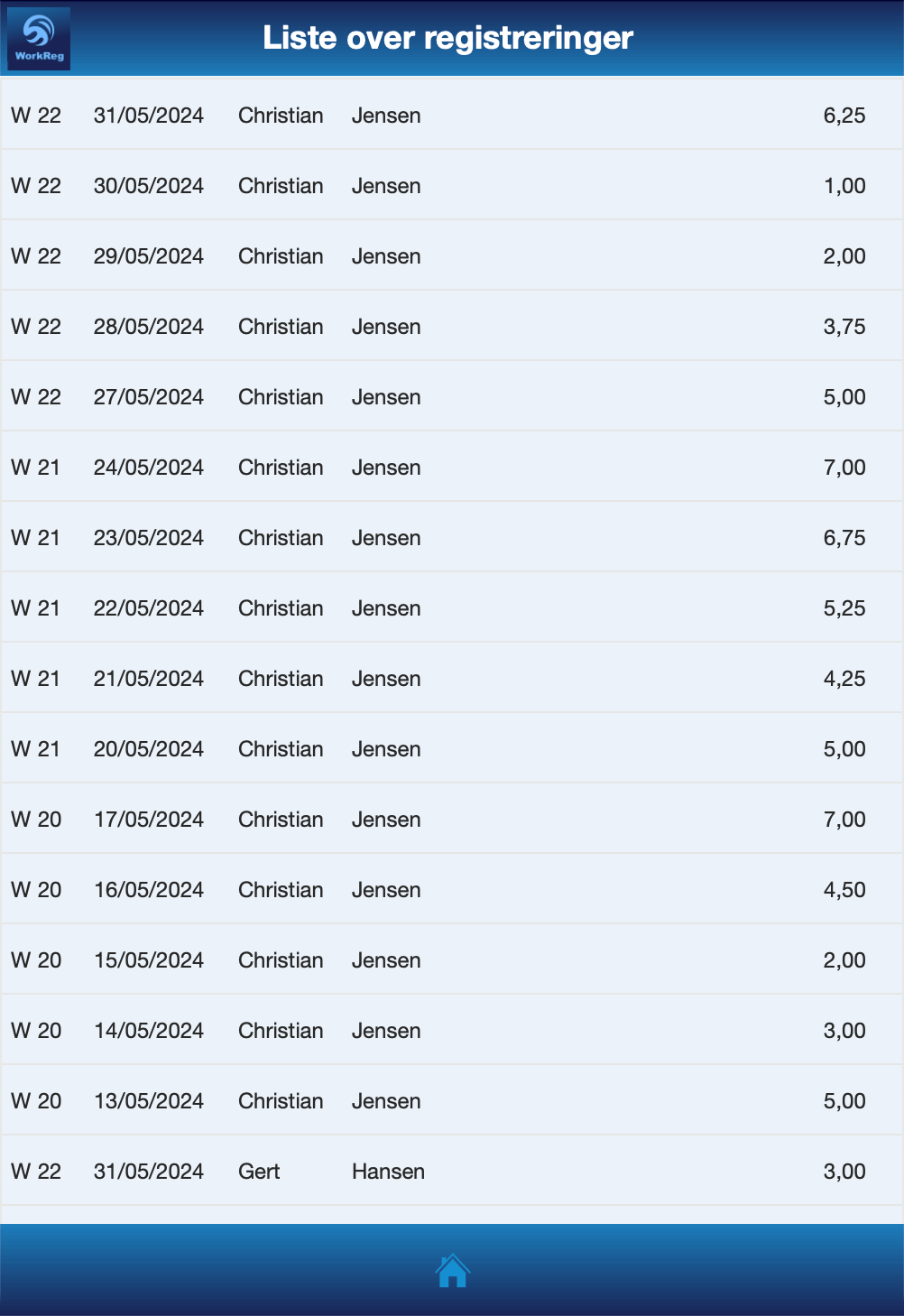 Medarbejdere kan tilgå DM WorkReg direkte via sin telefon i FileMaker GO uden at skulle åbne jeres FileMaker-system. Dette gør det virkelig nemt for alle medarbejdere altid at have styr på sine registreringer. Medarbejderen kan selvfølgelig også lave registreringer her, hvis man fx. har været på arbejde, men ikke åbnet jeres FileMaker system.